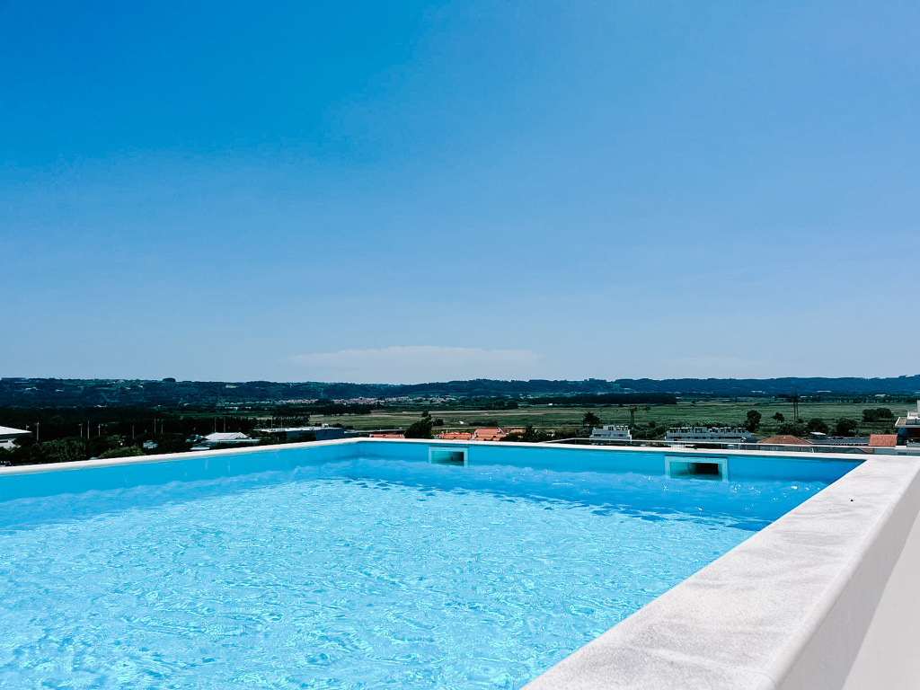 O edifício está equipado com elevador e possui um amplo terraço comum no topo, com piscina.