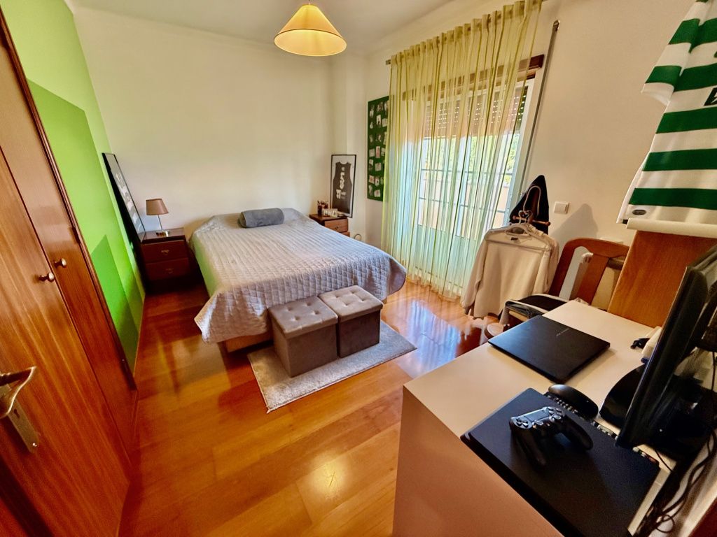 - Jardim amplo e murado, com potencial para construção de piscina, havendo uma parte do jardim com relva sintética e outra parte pavimentada.