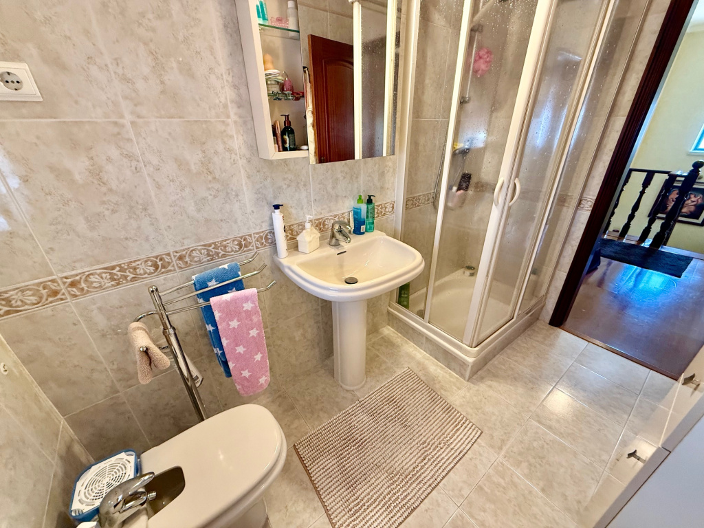 No 1º andar encontramos 3 quartos, sendo 1 em suite com closet e casa de banho privativa, e ainda uma casa de banho completa de apoio aos 2 quartos.
